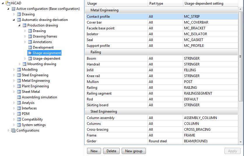 the Usage Filler plate is now automatically assigned to filler plates. In this way you can, e.g. also create usage-dependent configurations for filler plates, which will then be considered for drawing derivations.