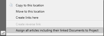 In this way, you can also assign a document and/or article (multiple selection is possible) to a project, or documents, articles and/or (sub-)folders to a folder.