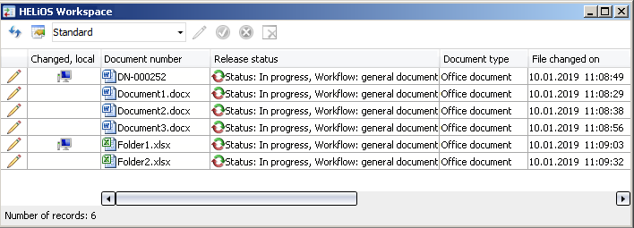 Besides, right-clicking a result list row in the window opens a complete HELiOS document context menu, allowing you to open documents in the corresponding Office application (right-click and choose Open + Edit). Double-clicking a row opens the associated HELiOS document detail window.