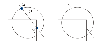 (1) Graphical element to be trimmed(2) Termination for trimming