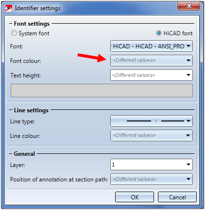 If the model drawing contains views with different identifier settings, this will be indicated in the corresponding input fields by the text <Different values>.