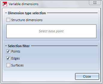 For structure dimensions you can specify several consecutive points after dropping the first dimension. The selection of the consecutive points can be ended by pressing the middle mouse button. After this, the base point selection will be active again.