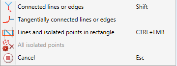 Tangentially connected lines or edges Choose this function if you also want to delete all tangentially connected lines or edges when identifying the next line or edge. |
