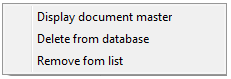 Rows containing files for which a document master already exists in the database, will be highlighted in yellow colour. If you right-click a row highlighted in yellow, a context menu will be displayed, enabling you to