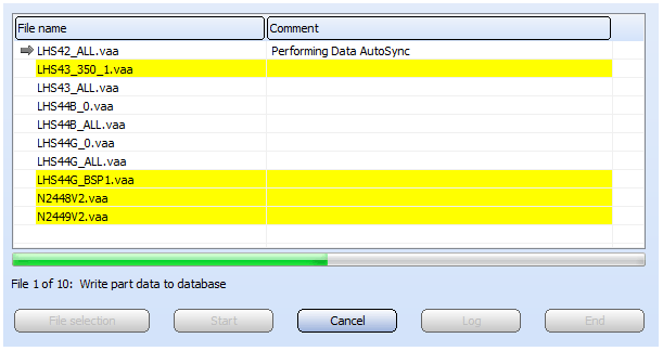 After completion of the part data synchronisation, you can display a Log about the process. Click End to end the program.