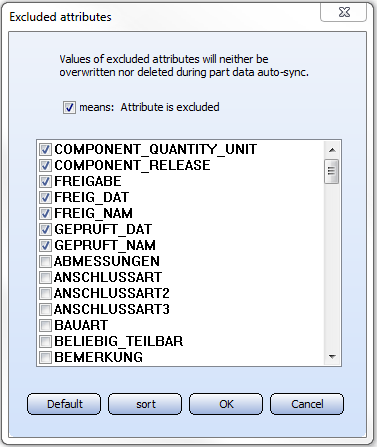 The selected attributes will be excluded from the part data synchronisation, i.e. for each of these attributes the following applies: