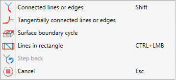 After selecting the function, identify the required line/edge, or use the functions of the context menu for the line/edge selection. You activate the context menu with a right-click in the process of edge identification.
