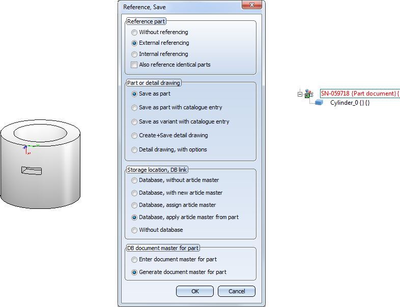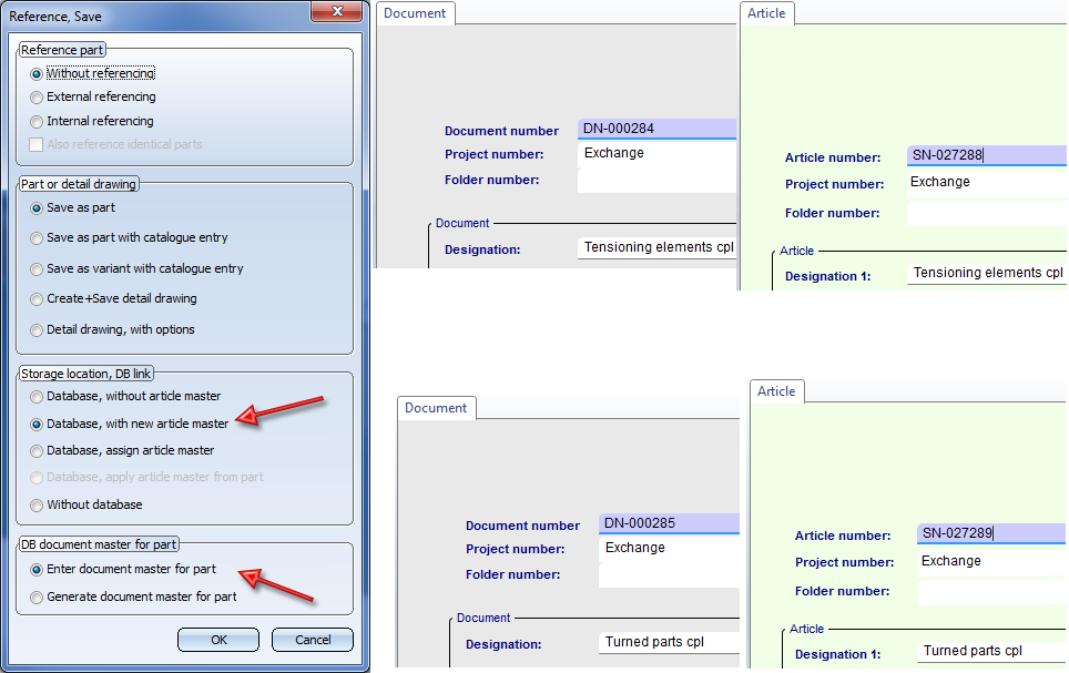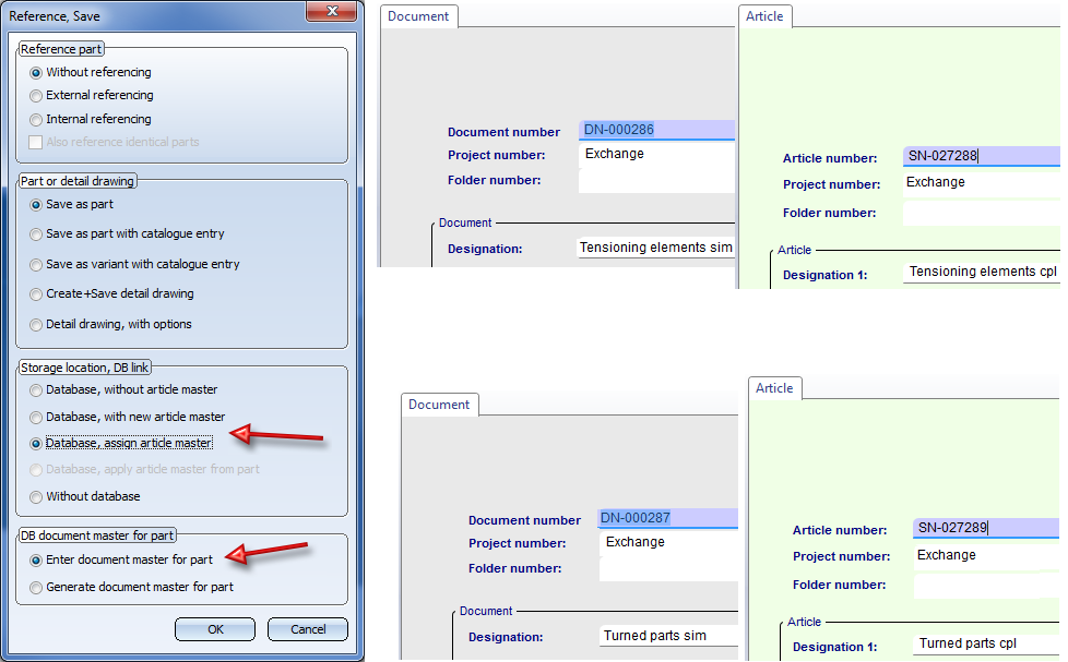 If one of the geometries exists in an assembly, it can now be easily exchanged with a different geometry by means of the Exchange 3-D part, via DB link function.
