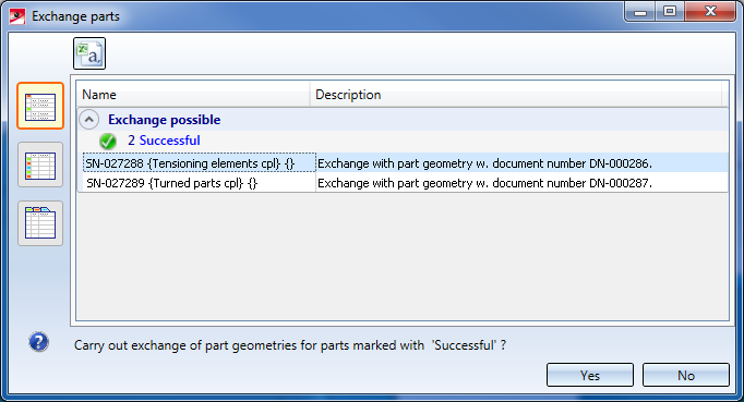 Click Yes to start the exchange of the parts that have been marked as "Successful".