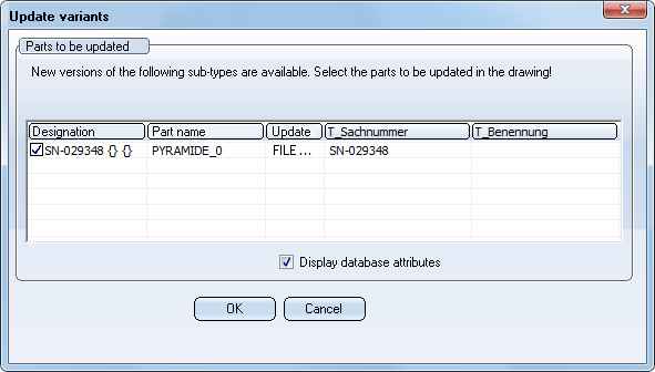 If you want to update the variant in the drawing, activate the checkbox for the part and click OK.