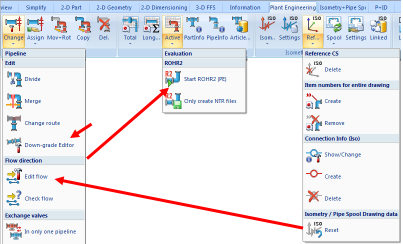 > Ref. > ... to the menu Plant Engineering > Pipeline Tools > Change