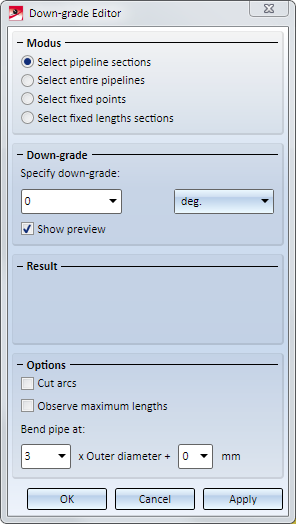 you can assign down-grades to individual sections of a pipeline. You find the Down-grade Editor at Plant Engineering > Pipeline Tools > Change