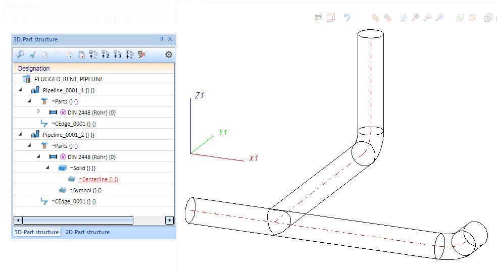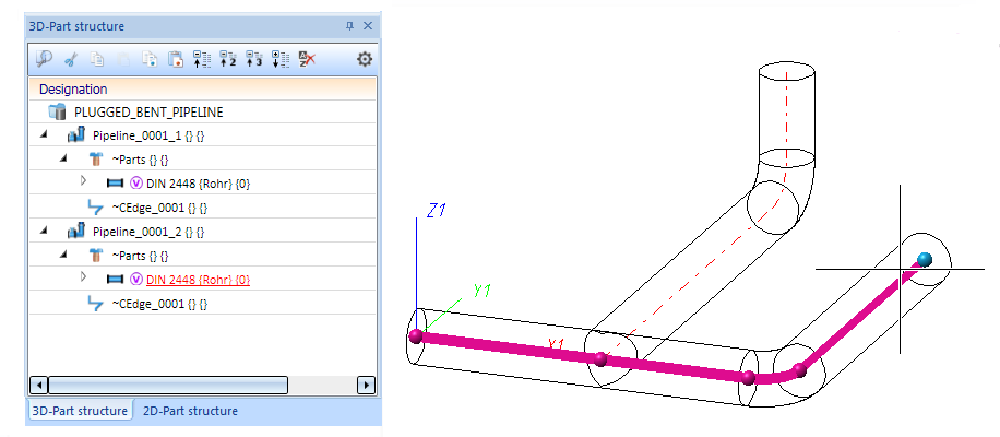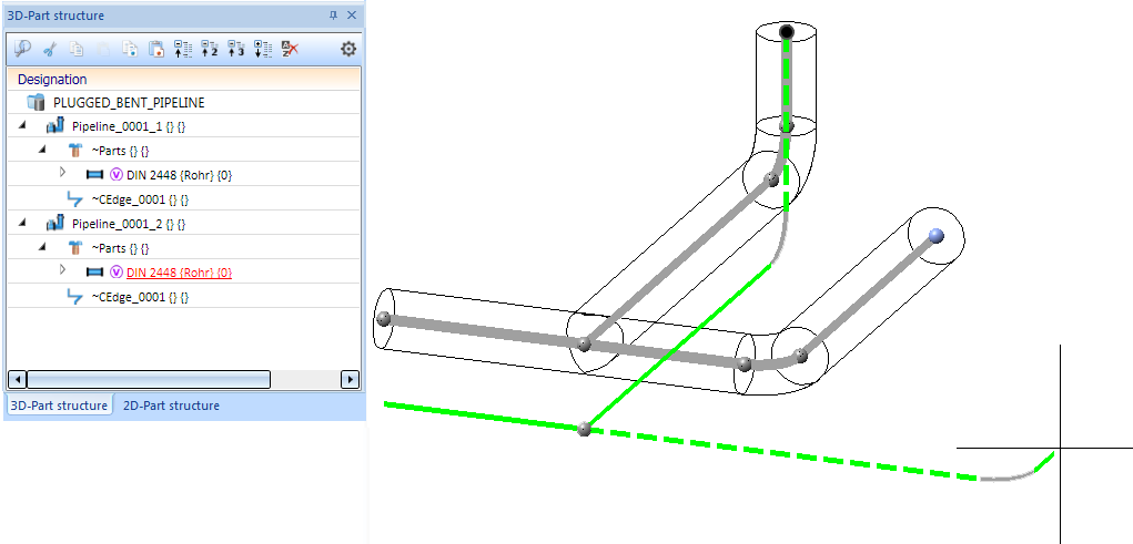 As soon as the point that is to be moved has been selected both pipelines will be taken together. In this example the fixed point has even been selected in the second pipeline.
