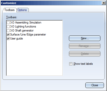 Now show the toolbars whose buttons you want to use for your own toolbar by activating the appropriate checkboxes.