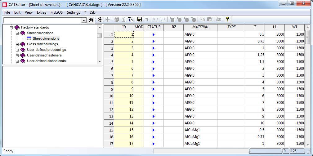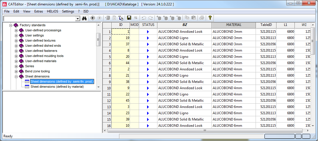 The dimensions of the ALUCOBOND panels stored in this table are predefined by ISD. However, you can extend this table as required for other semi-finished products.