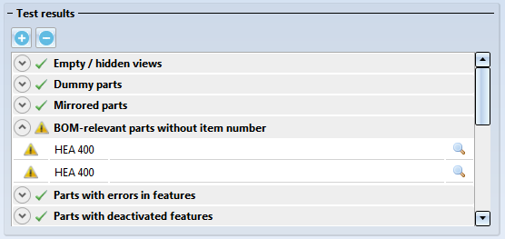 Click the symbol to obtain more detailed information on the test results. To expand or collapse all test results, click or , respectively.