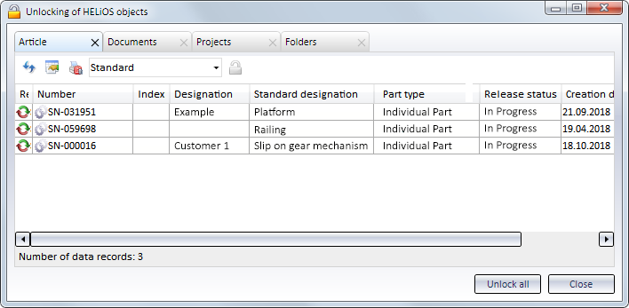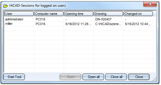 When the system crashes, the lock files of the drawings that were open at the moment of the crash are not removed, i.e. the drawings will remain locked for other users. The locked files will be displayed in the HiCAD Sessions ... dialogue window when HiCAD is restarted.