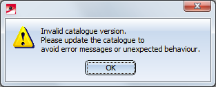 If the version of the catalogue cannot be detected, the following message will be displayed: