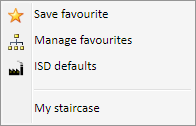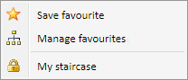 Please note that Favourites always belong to a particular dialogue. This means that if you activate the Favourites Management in the dialogue window of the Staircase Configurator, only the Staircase Configurator-related Favourites will be displayed there.