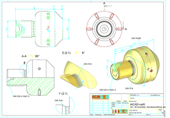 drawings from 3-D models. As all views in HiCAD are associative, changes to the production drawing are automatically transferred