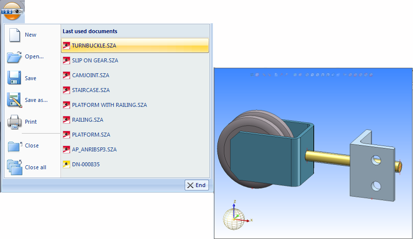 Click the ISD button at the top left next to the QuickAccess toolbar to open a window with the default functions for file management. In addition, you have direct access to the last used files.