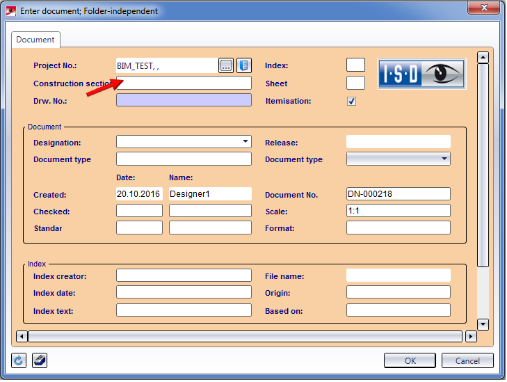 Designate assemblies as construction/production sections Use this document attribute (represented in the Links list as Construction unit) to designate assemblies as construction sections. If this attribute has been assigned via the document master to an assembly, all parts that belong to it will obtain the Construction unit link. In this way you can check at any time to which assembly a part belongs. The dialogue masks that have been adjusted especially for civil engineering tasks already contain this attribute.