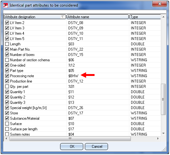 and, in the dialogue window, click the Configuration button. In the displayed window, activate the attribute $BHW: