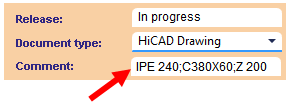 If you now create a workshop drawing containing all parts, the following string will be assigned to the document attribute BEMERKUNG (Comment) of the drawing:
