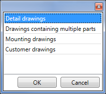 There you can choose between detail drawings, drawings containing multiple parts, mounting drawings and customer drawings. Mark the corresponding entry in the listbox to determine for which drawing types a rework via script is to be carried out, e.g.