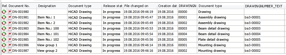 At the same time a text that is composed of the project name and the drawing number, separated by a "-" (e.g. EXAMPLEPROJECT-00005) will be assigned to the document attribute DRAWINGNUMBER_TEXT.
