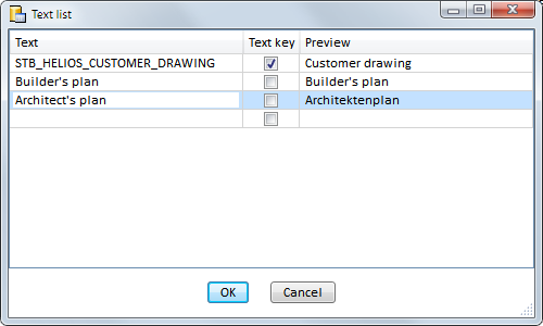 Pre-set has been the Customer drawing plan type (Text key STB_HELIOS_CUSTOMER_DRAWING). If you want to define other types, click the