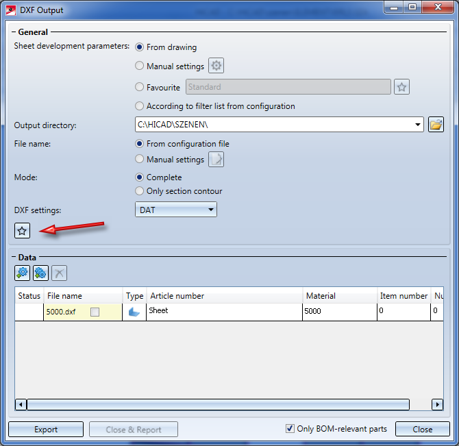 DXF export Favourite |