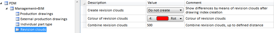 . The settings for revision clouds can be specified in the Configuration Editor at PDM > Management + BIM > Revision clouds fest.