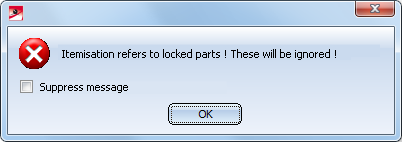 If, for example, you selected No, all released parts will be excluded from itemisation, and the following message will be displayed: