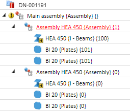 The model drawing below contains the assembly HEA 450, which in turn consists of 1 beam and 2 plates.