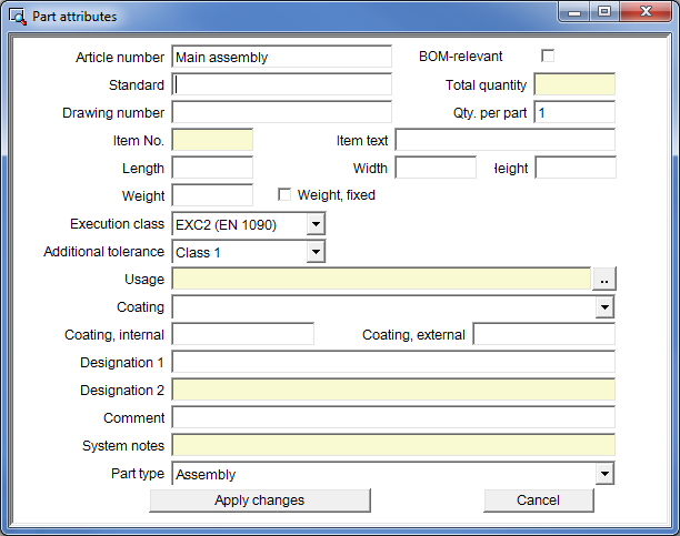 The drawing now only consists of one empty main assembly. The BIM status im ICN