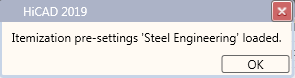 In the present example the ISD default settings for Management+BIM will be used. This means (among other things) that the pre-settings for Steel Engineering will be used for itemisation.