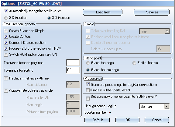 - Automatically recognise profile series: If this option has been activated, beam and profile series that have been imported to HiCAD via LogiKal will be automatically recognised, and will be inserted in an optimal manner according to the settings specified in the dialogue window.