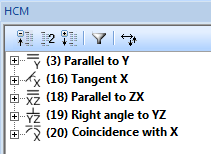 Positional constraints containing a reference to an axis or plane of the coordinate system will now be given particular attention: For instance, a parallelism constraint referring to the X-axis of the Sketch CS will not just be listed as Parallel in the ICN, but as Parallel to X.