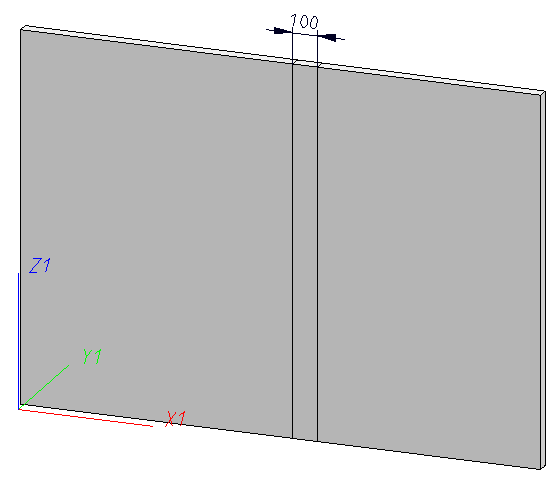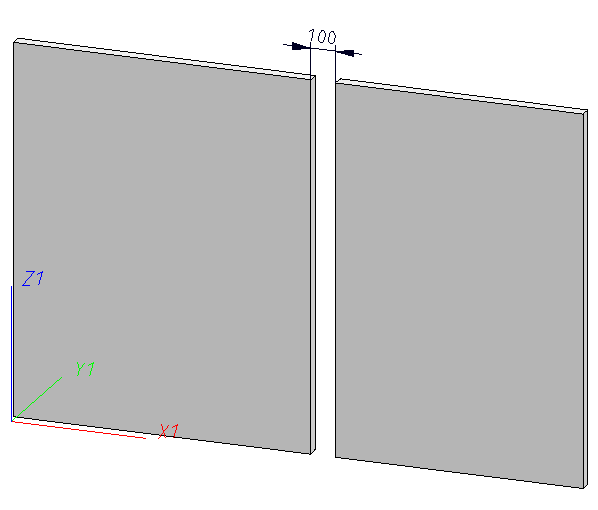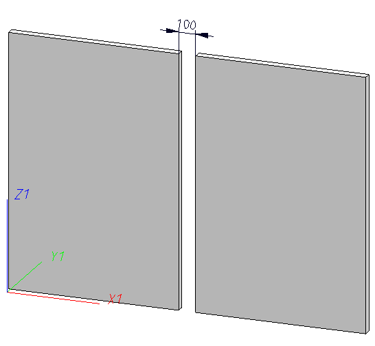 The left panel has been fixed. Both panels are kept on one plane by means of Coincidence constraints, and a Distance constraint defines a fixed distance between the edges on the borders of the 2 panels.