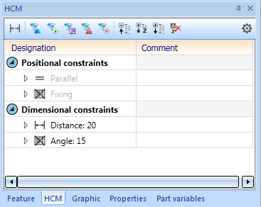 You have now the option to specify Comments for HCM constraints in composite edges and in 3-D assemblies. These have no influence on the model; their purpose is to describe the meaning of individual or all constraints, especially in larger model drawings.