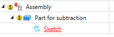 References to immediately superordinate parts or assemblies are not regarded as external references and will therefore be created even if the Use external references checkbox has been deactivated. An example of this is a sketch for a subtraction: If this sketch is located immediately beneath the part to which the subtraction is to be applied, it can still automatically obtain distance constraints to the edge of the part, e.g. when using the Offset function.
