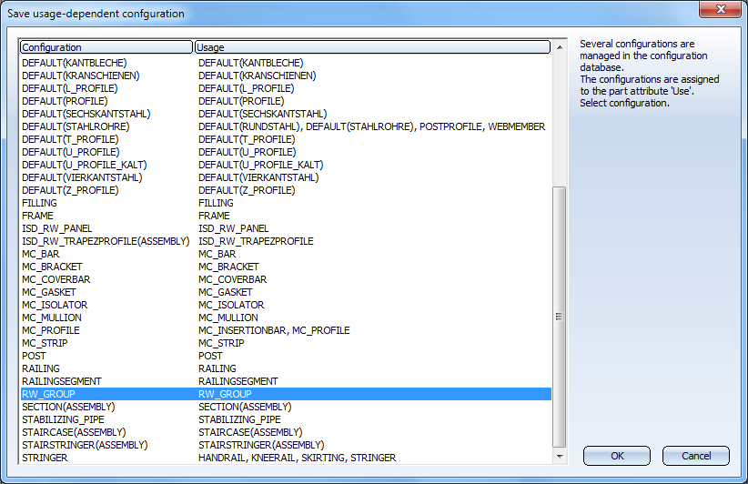 On the top right corner, click on the Load usage-dependent configuration. Choose the configuration RW_GROUP.