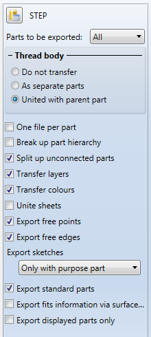 Thread bodies can be exported either as individual parts or as a union with the parent body. If you do not want threaded bodies to be exported, select Do not transfer. |
