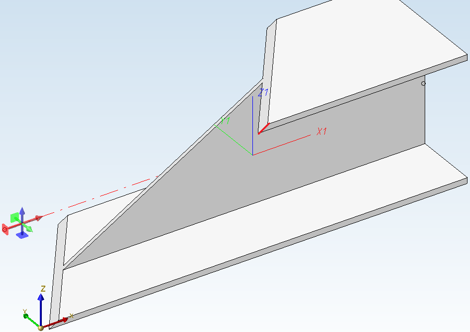If you choose View angle, the angle between the local X-axis and the section line of top surface and lateral surface of the beam will be output. (red dash-dotted line in the image below).