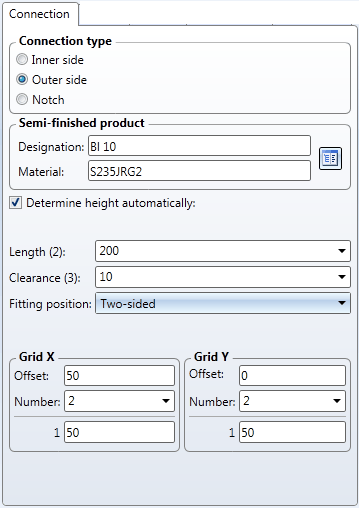 Depending on the fitting situation, the beam to be connected will be notched automatically. The corresponding settings can be specified in the Notch tab.