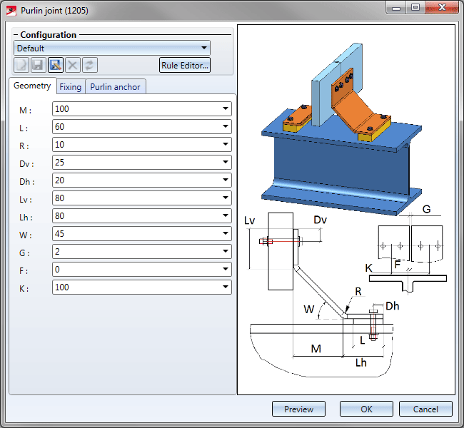 The dialogue window is operated in the same way as the one for Purlin joint 1204.