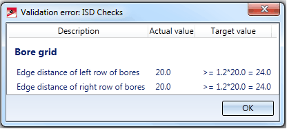 In the dialogue below, the distance of the bores to the beam edge is not recommendable from a technical point of view: