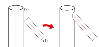 Trimming a pipe (1) to a different pipe (2) with lengthening |