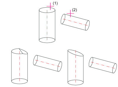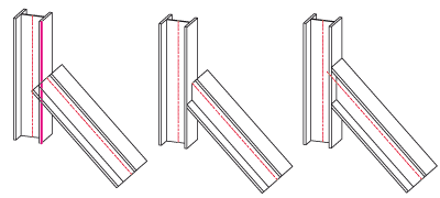 Trim beam, to outer beam edge Trims a beam to the outer edge of another beam. The beam to be cut must be identified on the section side. It particularly makes sense to use these functions to trim round beams, pipes etc. and when working with the new design variants.